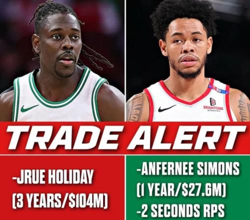 不过凯尔特人队还有一个重要的球员,他就是安芬尼-西蒙斯。西蒙斯原本是波特兰开拓者队的主力后卫,在2025年休赛期通过交易加盟了凯尔特人队。凯尔特人队原本用霍勒迪换了西蒙斯和2个次轮签,但是霍勒迪在开拓者队的体检中不合格,于是开拓者队只送出了西蒙斯,达成1换1的交易。