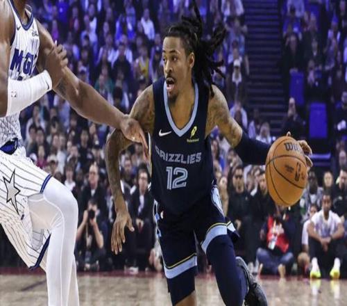 NBA伦敦赛 莫兰特干拔3分后“发射火箭筒”庆祝