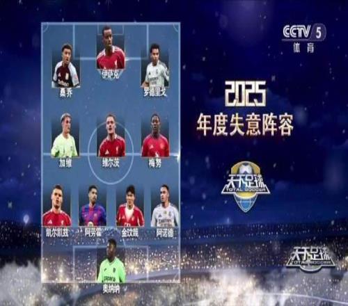 12月22报道 2025年即将结束,天下足球栏目评选了2025世界足坛年度失意阵容,其中,维尔茨、伊萨克在列,阿劳霍、桑乔上榜。