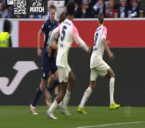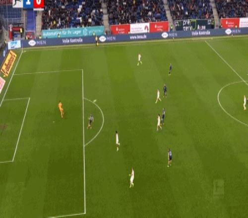第9分钟,布格尔任意球直接破门,霍芬海姆1-0勒沃库森