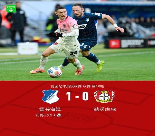 北京时间1月17日,2023-2024赛季德国足球甲级联赛第18轮展开较量,霍芬海姆坐镇主场迎战勒沃库森。比赛中,布格尔攻入全场唯一进球,帮助球队取得领先。凭借这一进球,霍芬海姆以1比0战胜对手,全取三分。