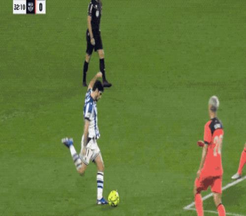 久保建英和奥亚萨瓦尔都向裁判投诉,VAR介入,认定奥尔莫犯规在先,进球无效。