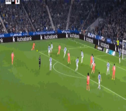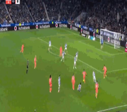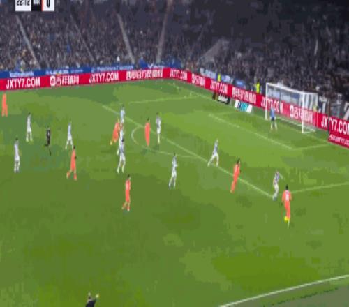 第32分钟,精彩绝伦,奥亚萨瓦尔凌空抽射破门,巴萨0-1
