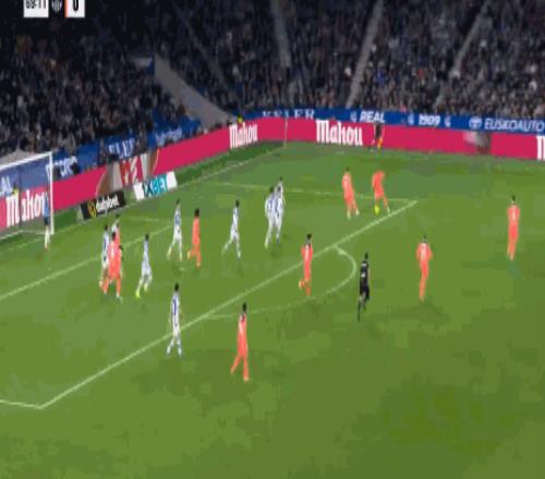 第9分钟,费尔明破门,但是因奥尔莫先前抢断犯规被判无效