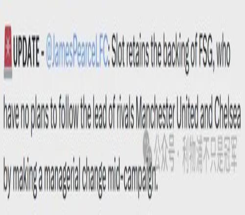 我想,芬威不是看不到利物浦的问题,更不可能对目前的竞技表现满意,之所以仍支持斯洛特,是因为他们同时也看到了球队在本赛季所面临的各种困难。