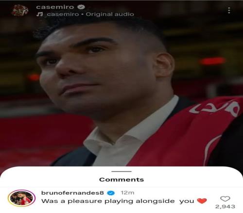利马&B费在社媒和卡塞米罗互动:和你共事太愉快了